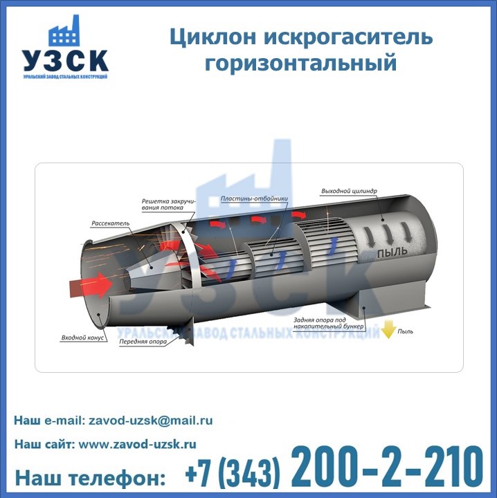 Монтаж циклона-искрогасителя ЦГ должен осуществляться непосредственно к горизонтальному вентиляционному каналу на входе в систему фильтрации и аспирации. Заказать изготовление по индивидуальному техзаданию или купить готовый циклон-искрогаситель ЦГ на заводе УЗСК в Таразе можно, оставив заявку прямо на сайте или позвонив по указанному телефону, уточнив все детали касательно продажи оборудования.