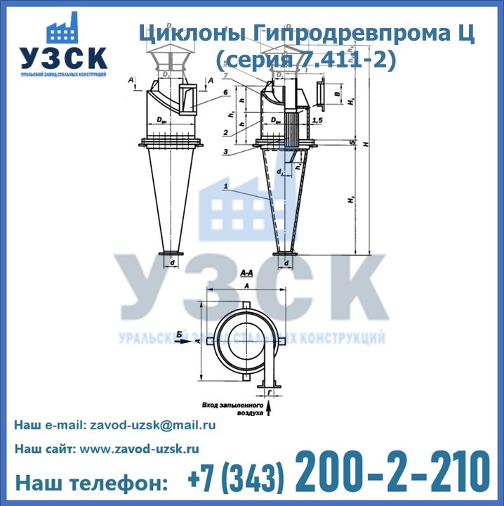 Циклоны Гипродревпрома Ц (серия 7.411-2) высокого качества можно купить в компании «УЗСК» в Таразе. Наши специалисты предоставят всю необходимую информацию информацию и помогут с выбором модели циклона. Подробные технические характеристики, конструкцию, параметры, ассортимент и стоимость продукции можно также найти на сайте УЗСК.