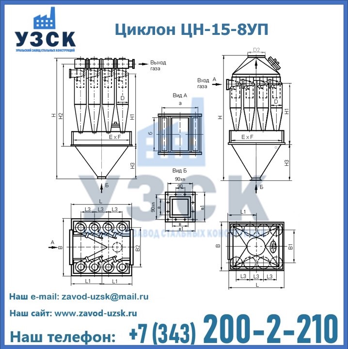 Завод «УЗСК» в Таразе предлагает большой выбор циклонов ЦН-15-500×8УП и прочих устройств, полностью укомплектованных и готовых к эксплуатации. Мы гарантируем соответствие оборудования всем требованиям ГОСТ и ТУ, износостойкость и высокую производительность предлагаемого оборудования. Уральский Завод Стальных Конструкций изготавливает и продает надежное, эффективное и производительное оборудование, имеющее длительную гарантию и большой эксплуатационный ресурс. Если требуется изготовить циклон нестандартных размеров, то такой вариант выполнения заказа тоже предусмотрен, так как предприятие имеет собственные производственные площади и надежных поставщиков. На все поставляемое или производимое оборудование имеются чертежи и прочая техническая документация. Заказать и купить циклоны или прочее оборудование высокого качества и по доступной цене можно через наш сайт или по указанному в разделе «Контакты» телефону.