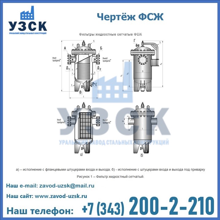 Очистку перекачиваемых жидкостей на предприятиях нефтяной, пищевой, горнорудной, фармацевтической и других отраслей промышленности эффективно выполнять с помощью жидкостного сетчатого фильтра — емкостное оборудование цилиндрической формы со съемной крышкой и элементом фильтрации внутри. Оснащенные им всасывающие линии насосных станций и установок защищены от проникновения твердых частиц в функциональные узлы гидравлической системы. Оборудование служит для перекачивания токсичных, агрессивных и иных эмульсий, суспензий, жидкостей. Купить фильтр сетчатый жидкостный ФСЖ в Таразе с гарантией производителя предлагает «Уральский завод стальных конструкций». Мы выполняем проектирование и изготовление ФСЖ по индивидуальным требованиям (климатическая зона, транспортируемая жидкость).