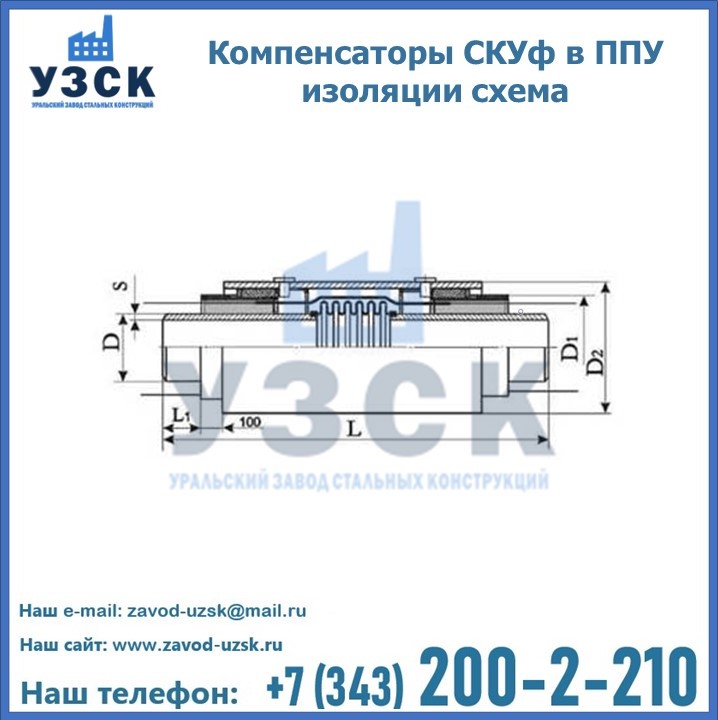 Если трубы для прокладки усилены теплоизоляцией ППУ, то на них допустимо устанавливать только cильфонный компенсатор СКУф в ППУ с такими же размерами теплоизоляционного слоя. На данный момент, такие устройства считаются одними из наиболее надежных, эффективных и долговечных элементов, способных обеспечить бесперебойную работу трубопроводов. На заводе «УЗСК» вы можете купить СКУф ППУ и другие компенсаторы по приемлемой цене, от надежных производителей. УЗСК осуществляет поставки сильфонных компенсаторов СКУ в ППУ любых типоразмеров. Наше предприятие поставляет и производит оборудование, имеющее длительную гарантию и большой эксплуатационный ресурс. Если требуется изготовить нестандартное изделие, то такой вариант выполнения заказа тоже предусмотрен, так как предприятие имеет собственные производственные площади и надежных поставщиков. На все оборудование имеются чертежи и прочая техническая документация. Чтобы заказать сильфонный узел СКУф в ППУ изоляции в Таразе необходимо направить запрос через форму онлайн-заказа на сайте или связаться с нашими специалистами по телефонам, указанным в разделе «КОНТАКТЫ .