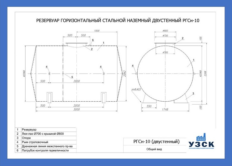 РГСДн-10: горизонтальный резервуар двустенный наземного расположения;