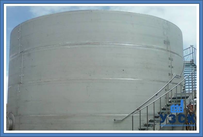 На строительной площадке, на подготовленном ложе собирают стенки, днище и крышу. Устанавливают понтон и все конструкции. Перед сдачей емкость проходит гидравлические испытания.
