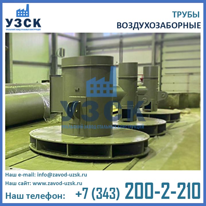 Уральский завод стальных конструкций осуществляет производство воздухозаборных труб для систем приточной вентиляции по альбомам Т-ОВ-03-01 и Т-ОВ-03-08. Вохможно изготовление труб воздухозаборных по чертежу заказчика.